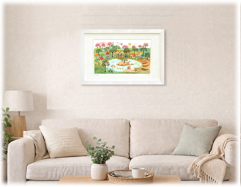 湖畔に集う動物や人々の穏やかな日常が、童話のような世界観とともに広がり