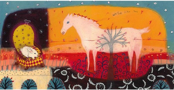 白馬を中心に幻想的な情景が広がる作品です。