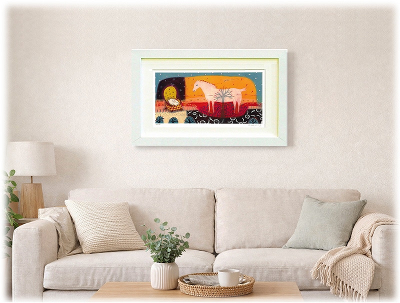 上質な白色の木製フレームで額装いたしました。