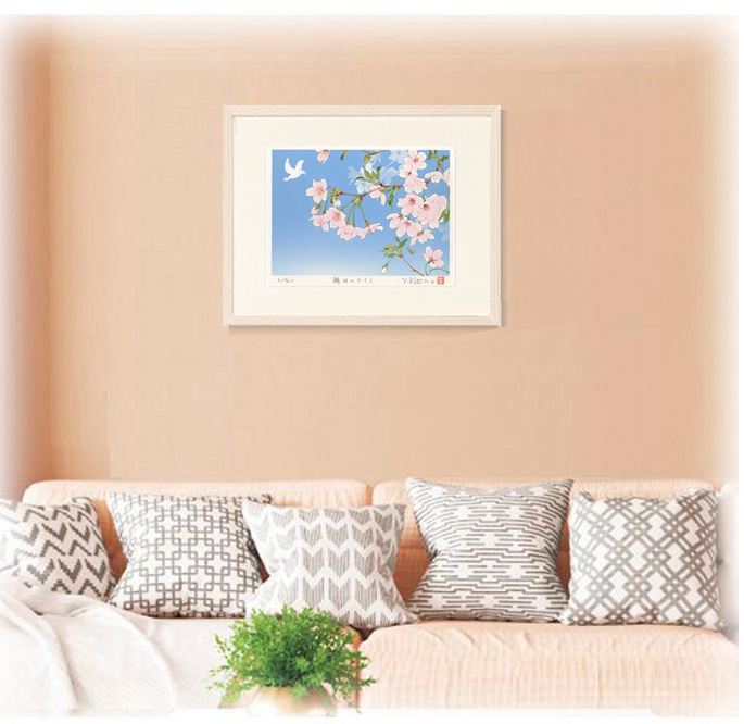 上質な白木地の木製フレームで額装いたしました。