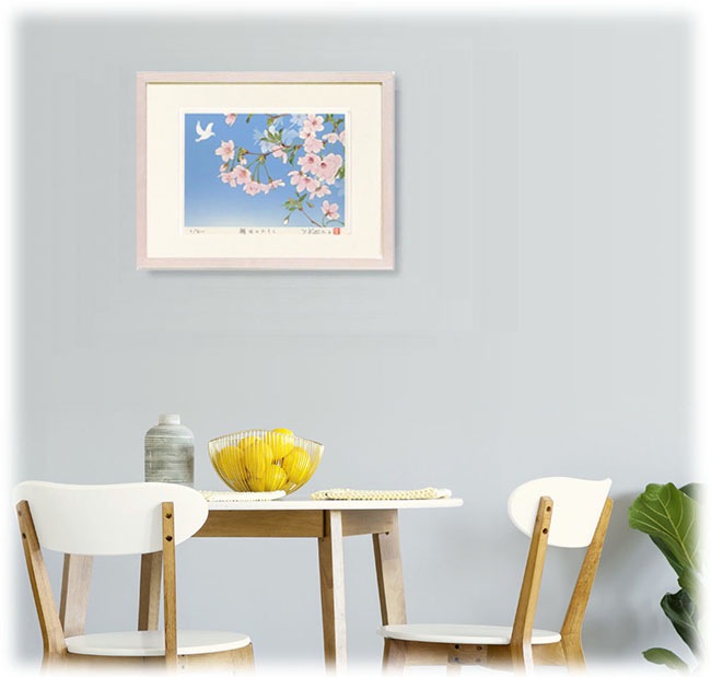 白木地の自然な風合いが作品に調和し、全体として穏やかで洗練された雰囲気を演出します。